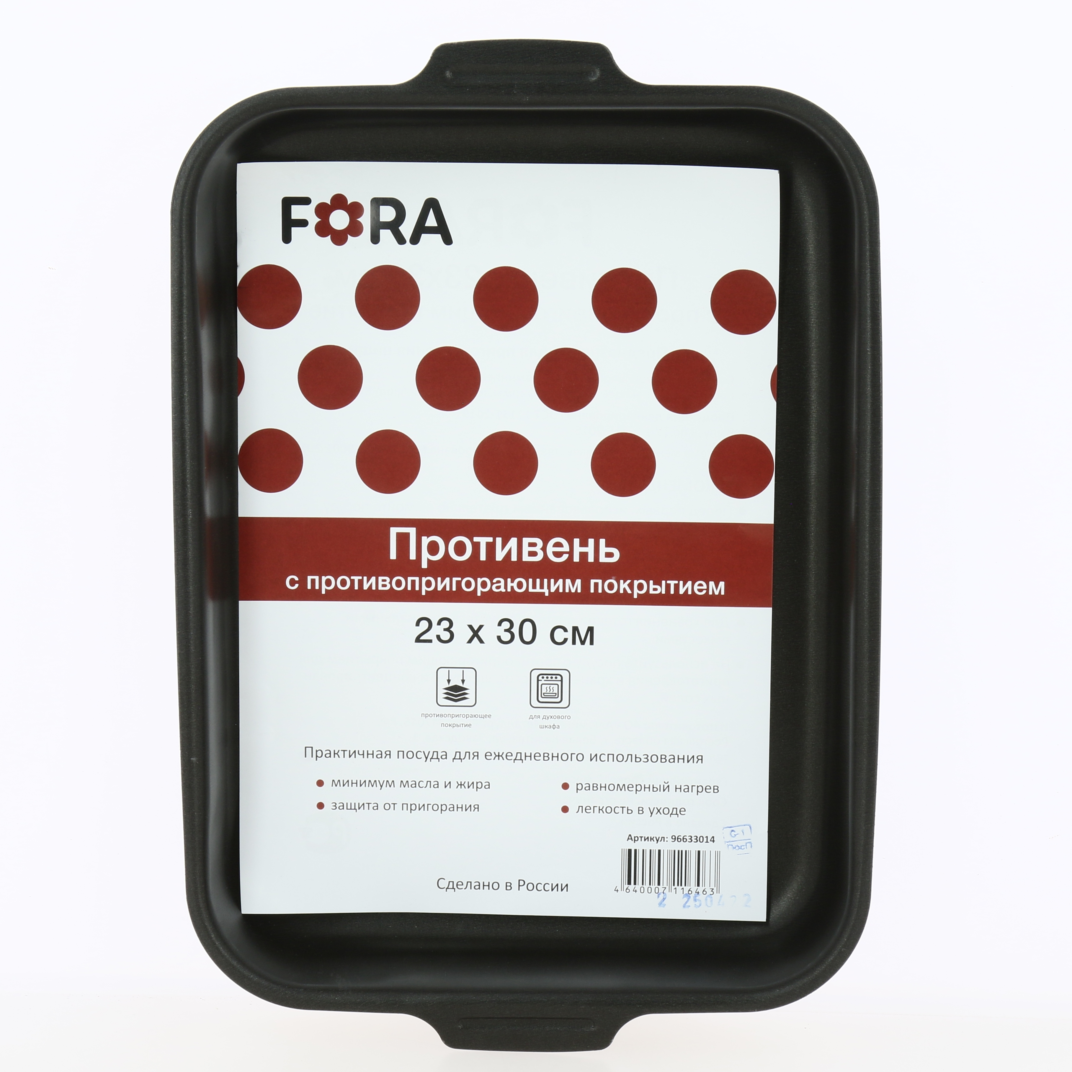 Противень FORA выполнен из высококачественного алюминия с антипригарным покрытием. Изделие с таким покрытием идеально подходит для приготовления пищи с применением минимального количества жира и масла. Покрытие предотвращает пригорание пищи и ее "прилипание" к стенкам и дну посуды.Такой противень станет верным помощником в создании ваших кулинарных шедевров.Противень подходит для газовых и электрических плит, а также для использования в духовке.
