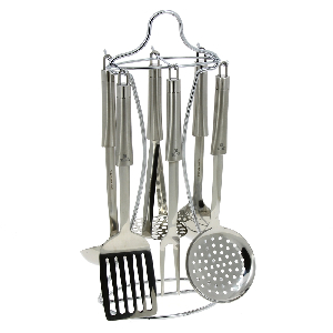 Посуда торговой марки Taller – это сочетание передовых технологий и традиционного английского стиля. Созданная из высококачественных материалов, она воплощает в себе функциональность, практичность и современный дизайн. Набор кухонных принадлежностей Taller включает в себя: поварскую ложку, поварскую вилку, перфорированную лопатку, картофелемялку, половник, шумовку и подставку. Набор изготовлен из качественной нержавеющей стали. Эргономичные ручки оснащены петлей для подвешивания. Крючки компактной подставки защищены специальными наконечниками, чтобы предохранить ручки приборов от царапин. Все предметы набора можно мыть в посудомоечной машине.