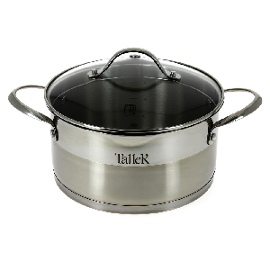 Кастрюля марки Taller оснащена удобными стальными ненагревающимися ручками. Форма края кастрюли предусматривает желобок для удобного слива жидкости. Крышка кастрюли выполнена из термостойкого стекла с отверстием для выхода пара. Удобные отметки литража на внутренней поверхности посуды позволяют не использовать при приготовлении дополнительную мерную посуду. Идеальное распределение тепла обеспечивается капсулированным дном с алюминиевой вставкой. Кастрюля изготовлена из высококачественной нержавеющей стали, которая отличается прочностью, устойчивостью к коррозии и отсутствием вредных соединений при контакте с продуктами. Кастрюля подходит для всех типов плит, включая индукционную, её можно мыть в посудомоечной машине.