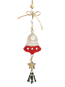 Новогоднее подвесное украшение Колокольчик из древесины тополя с колокольчиком из черного металла 12,5x0,6x4,3см 82163