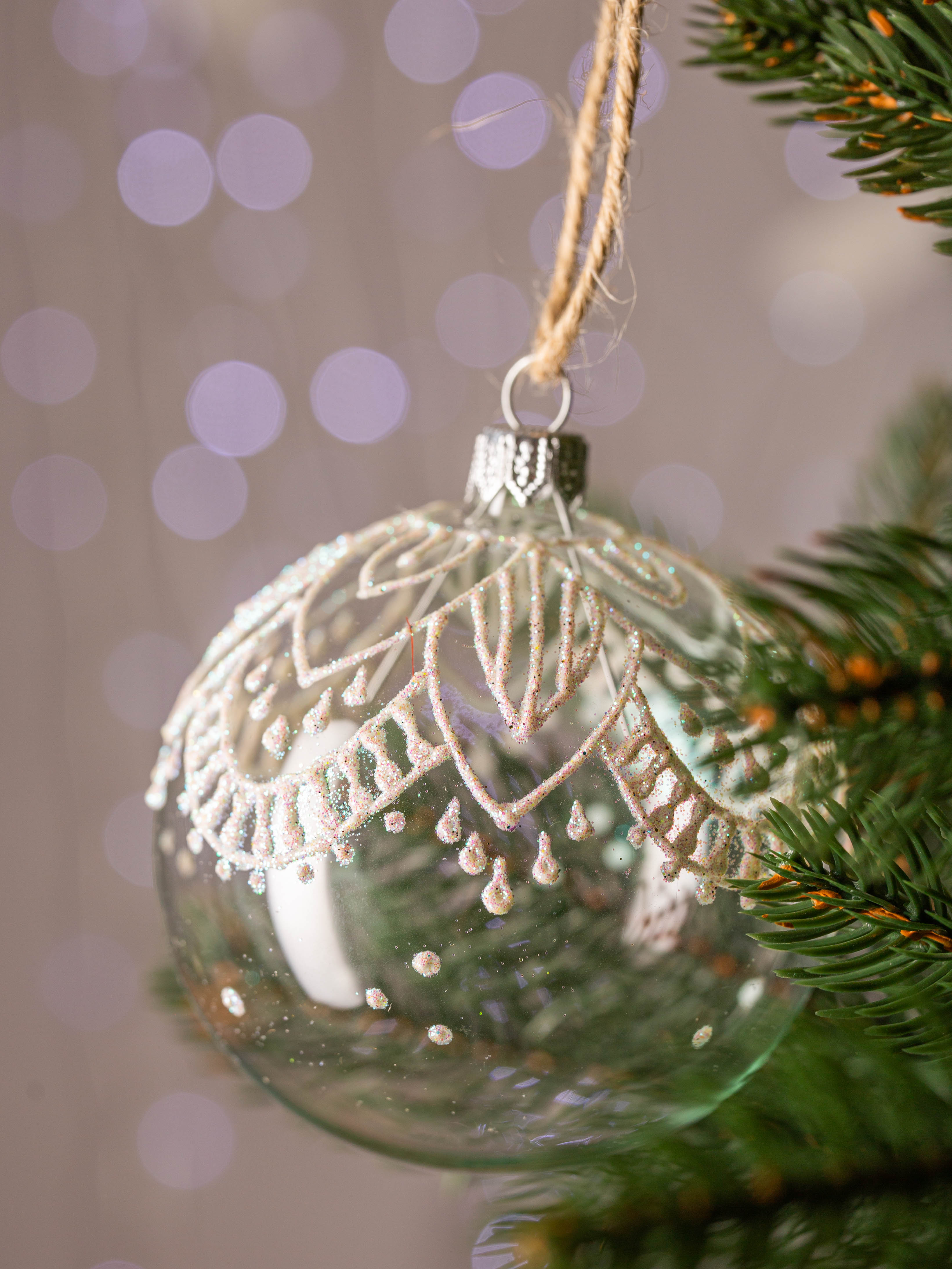 Декоративное украшение Шар №4,5 D8см БИРЮСИНКА Кружево белый стекло