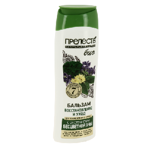 Бальзам для волос Прелесть Био Восстановление и уход. Бальзам восстанавливает и укрепляет волосы. Натуральный бальзам для волос препятствует выпадению волос. Стимулирует их рост. В составе средства для волос экстракт бесцветной хны. Бальзам подходит для ежедневного применения. Бальзам с экстрактом бесцветной хны. Увлажняет, питает и предотвращает выпадение волос. Хна стимулирует кровообращение в коже головы, пробуждая тем самым спящие волосяные фолликулы. Хорошо помогает справиться с перхотью. В основе всех серий по уходу за волосами ухаживающий комплекс на основе 7 целебных трав "7 Healthy Herbals", он бережно ухаживает за поврежденными волосами, возвращает им природную силу, красоту и здоровье.