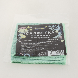 Универсальная салфетка HOMEX из микрофибры — это настоящая фея чистоты, легко справляющаяся с пылью, пятнами и различными загрязнениями. Понадобится всего несколько минут, чтобы стеклянный стол или большой экран LED телевизора засверкал идеальной чистотой. Купить универсальную салфетку HOMEX можно для очистки кухонных рабочих поверхностей, деревянной мебели, посуды, сантехники и напольных покрытий. Размер 30х30 см.