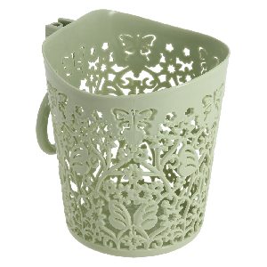 Корзина для хранения в форме стакана — это удобная емкость для хранения вещей, которую отличает современный дизайн. Перфорированныйпластик выглядит эстетично, а потому изделие может использоваться в качестве декоративного аксессуара. Крючок на поверхности позволяет подвешивать ее, например , на рейтинг и хранить хозяйственные вещи в доступном месте.