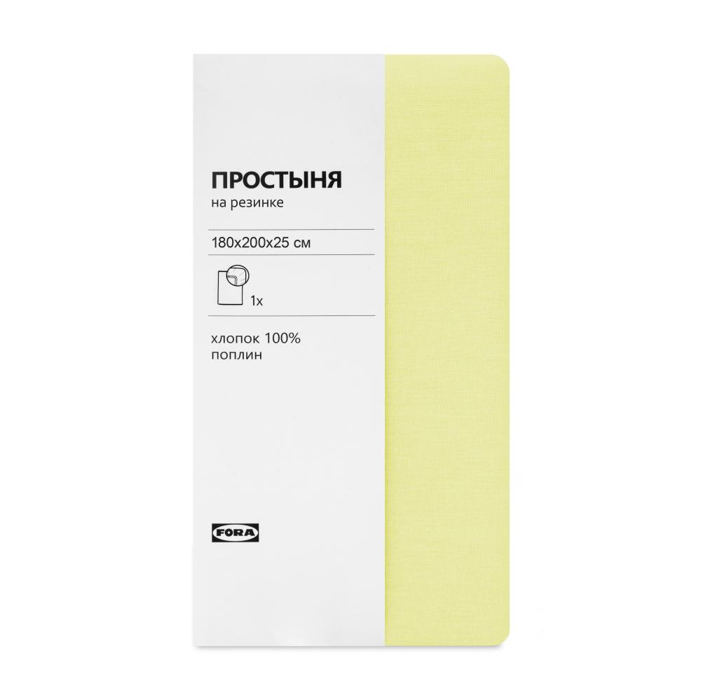 Простыня на резинке 180х200х25см FORA канареечный поплин хлопок 100%