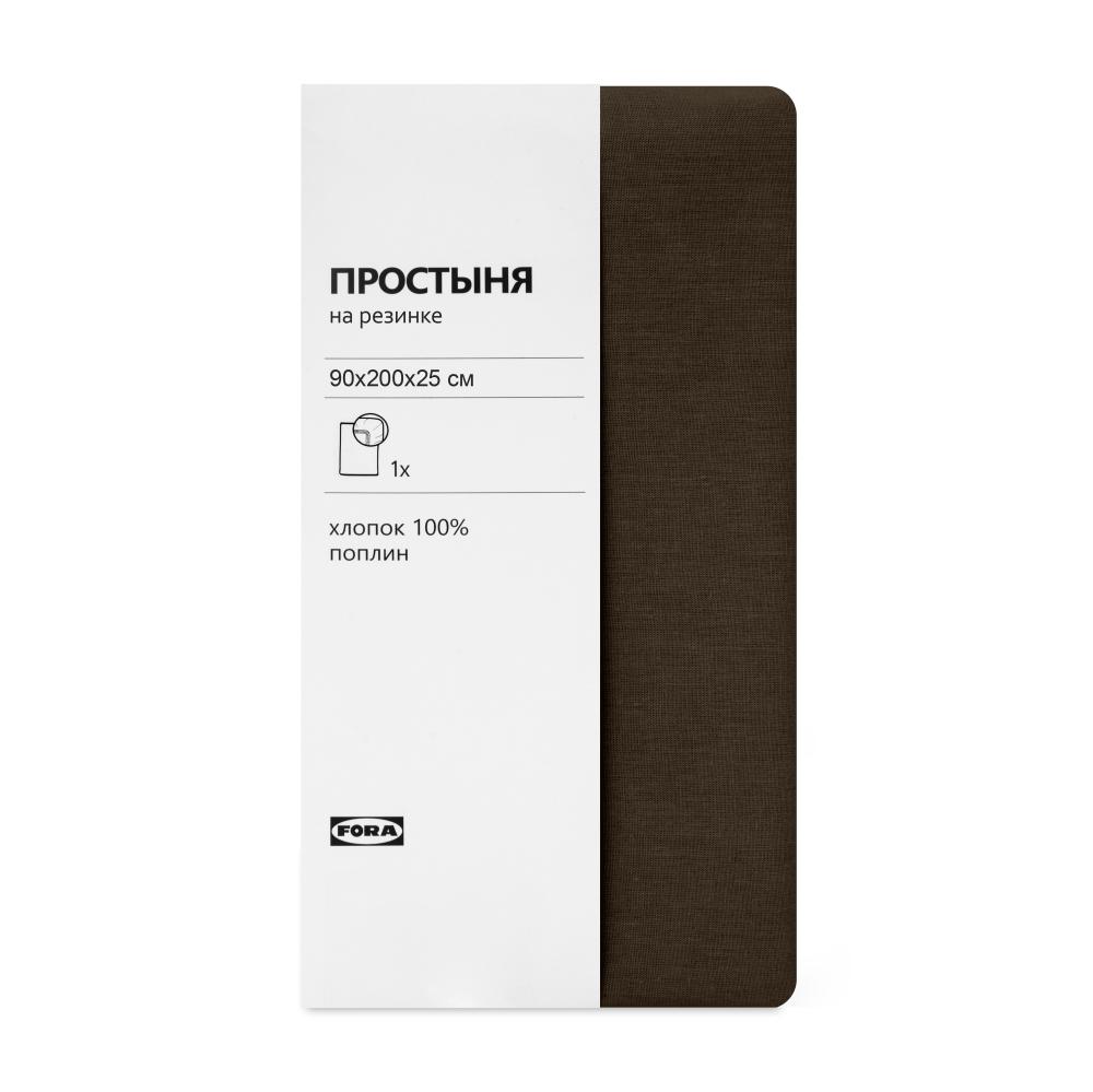 Простыня на резинке 90х200х25см FORA шоколад поплин хлопок 100%