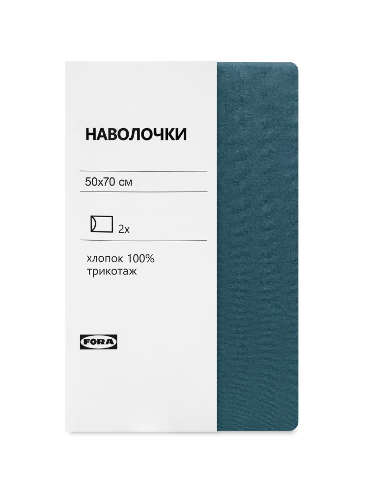 Наволочки 50х70см 2шт FORA сине-зеленый трикотаж хлопок 100%