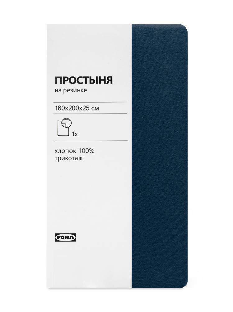Простыня трикотажная на резинке 160х200х25см FORA индиго хлопок 100%