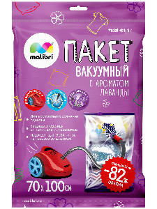 Пакет Вакуумный 70х100см Malibri с клапаном, Аромат Лаванда, плотность 60мкр, предназначен для многократного применения 1016-003