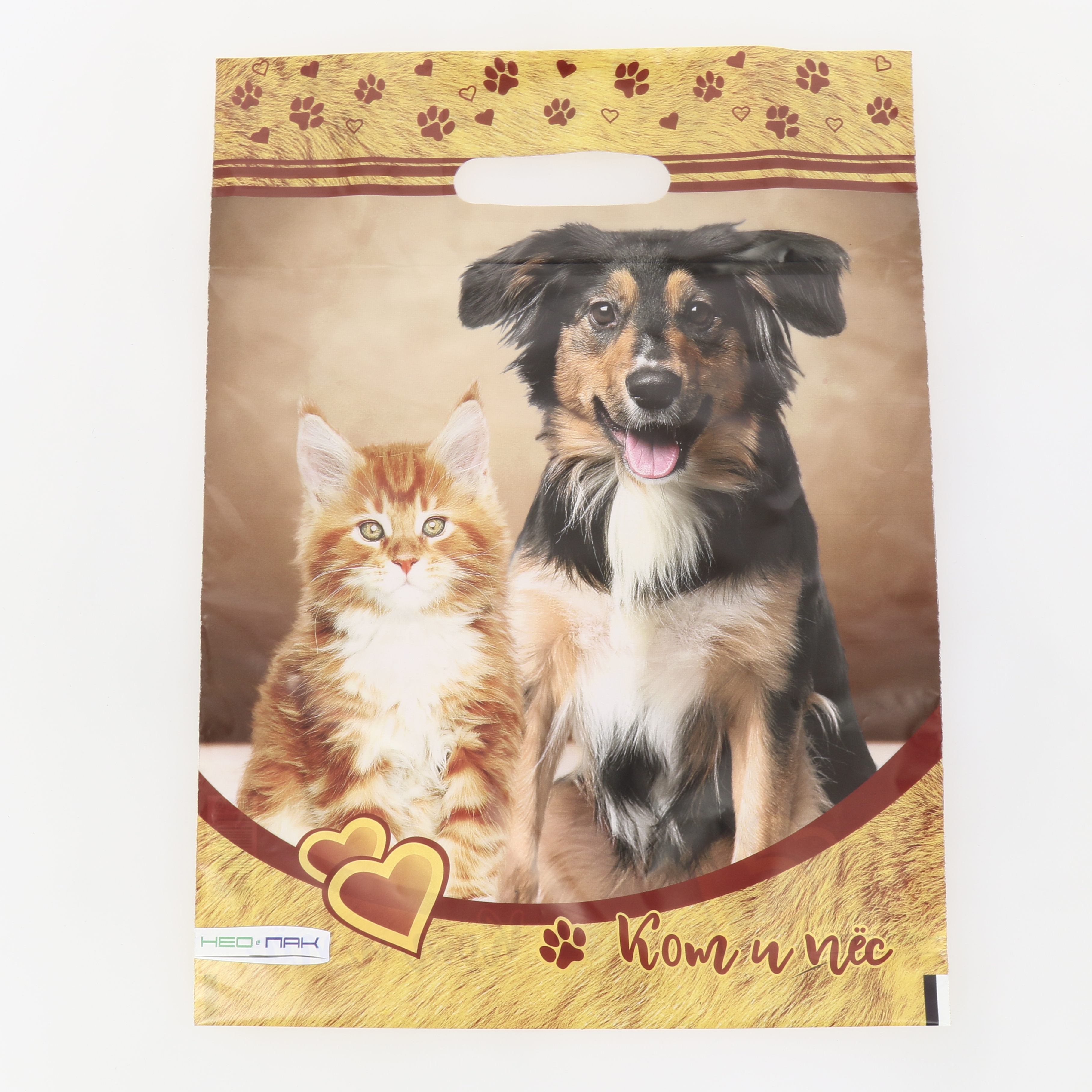 Пакет 30х40см Кот и пес 60мкм вырубная усиленная ручка полиэтилен