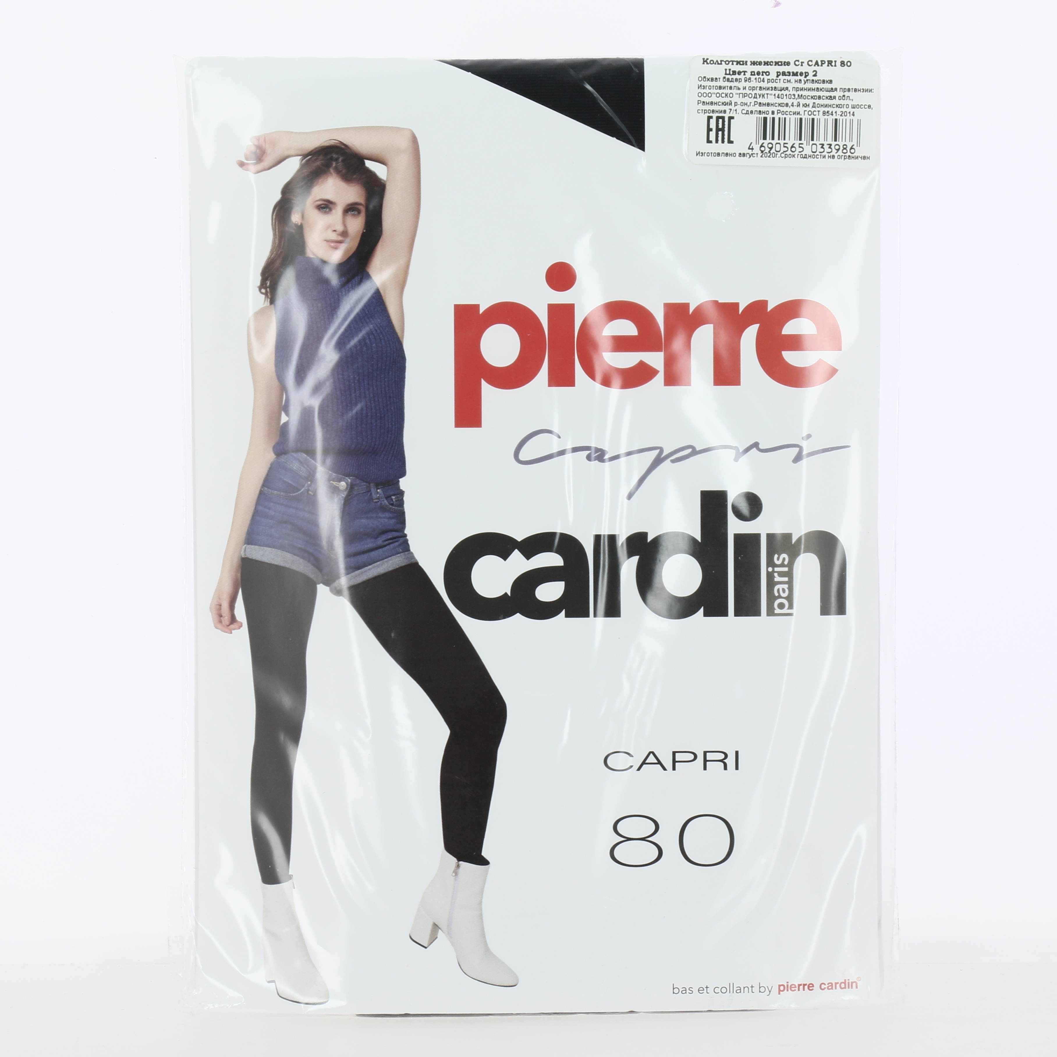Колготки женские 80ден р2 PIERRE CARDIN Капри матовые с хлопчатобумажной ластовицей и плоскими швами черные 95%полиамид 5%эластомер
