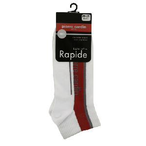 Носки мужские Pierre Cardin Rapide хлопковые белые – достойный выбор коротких носков для кед и кроссовок. Изготовлены носки из высококачественного хлопкового трикотажа с добавлением полиамида и эластана, что позволяет носкам плотно облегать ногу. Особое плетение трикотажа обеспечивает доступ воздуха к коже ног. Эластичная манжета - резинка хорошо удерживает носки даже при интенсивном движении. Высота паголенка ниже уровня щиколотки. Модель носков выполнена в белом цвете с лаконичной надписью Pierre Cardin на фоне вертикальной серо-красной полосы.