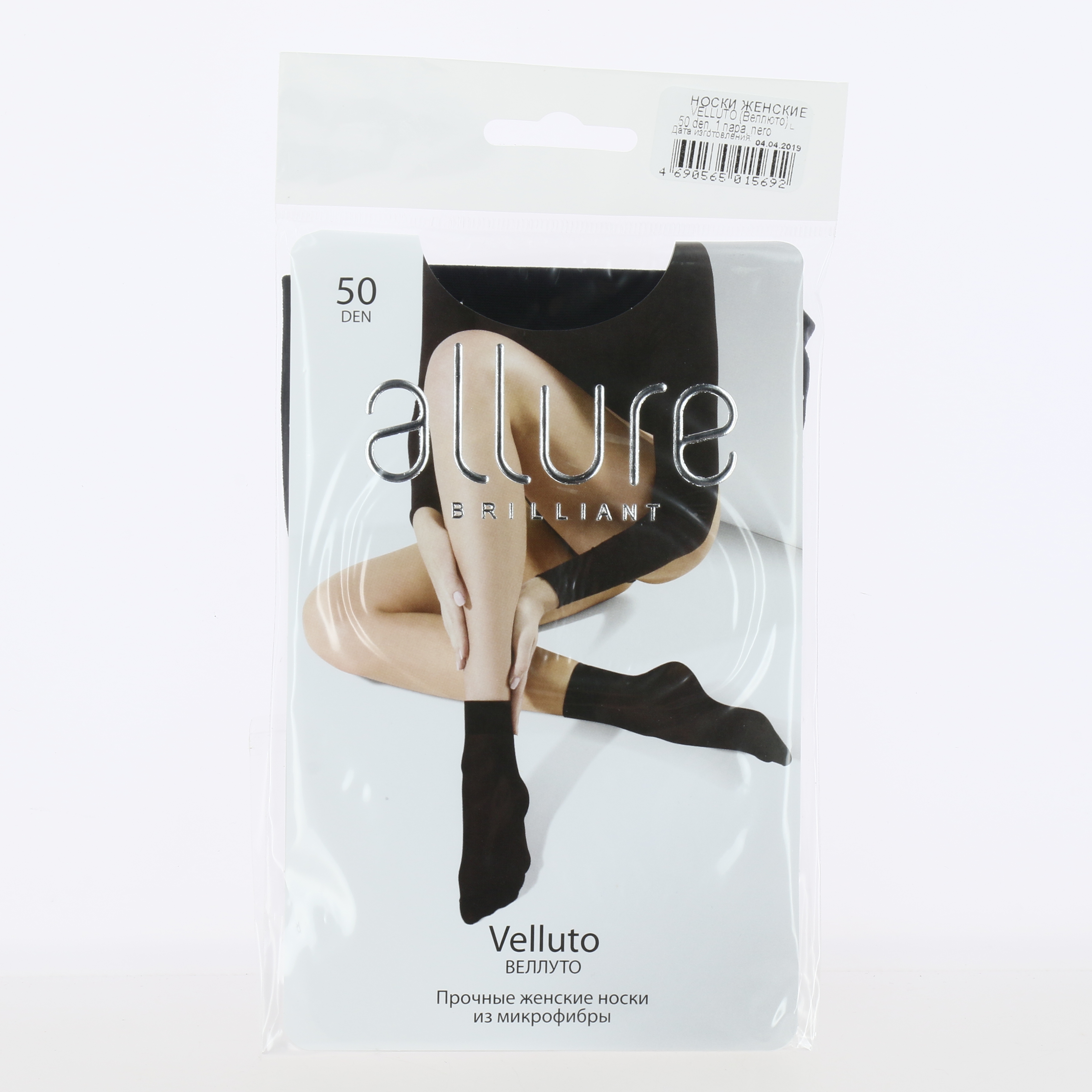 Носки женские 50 ден ALLURE Велутто nero. Прочные и плотные носки из мягкой микрофибры. 91% полиамид 9% эластан