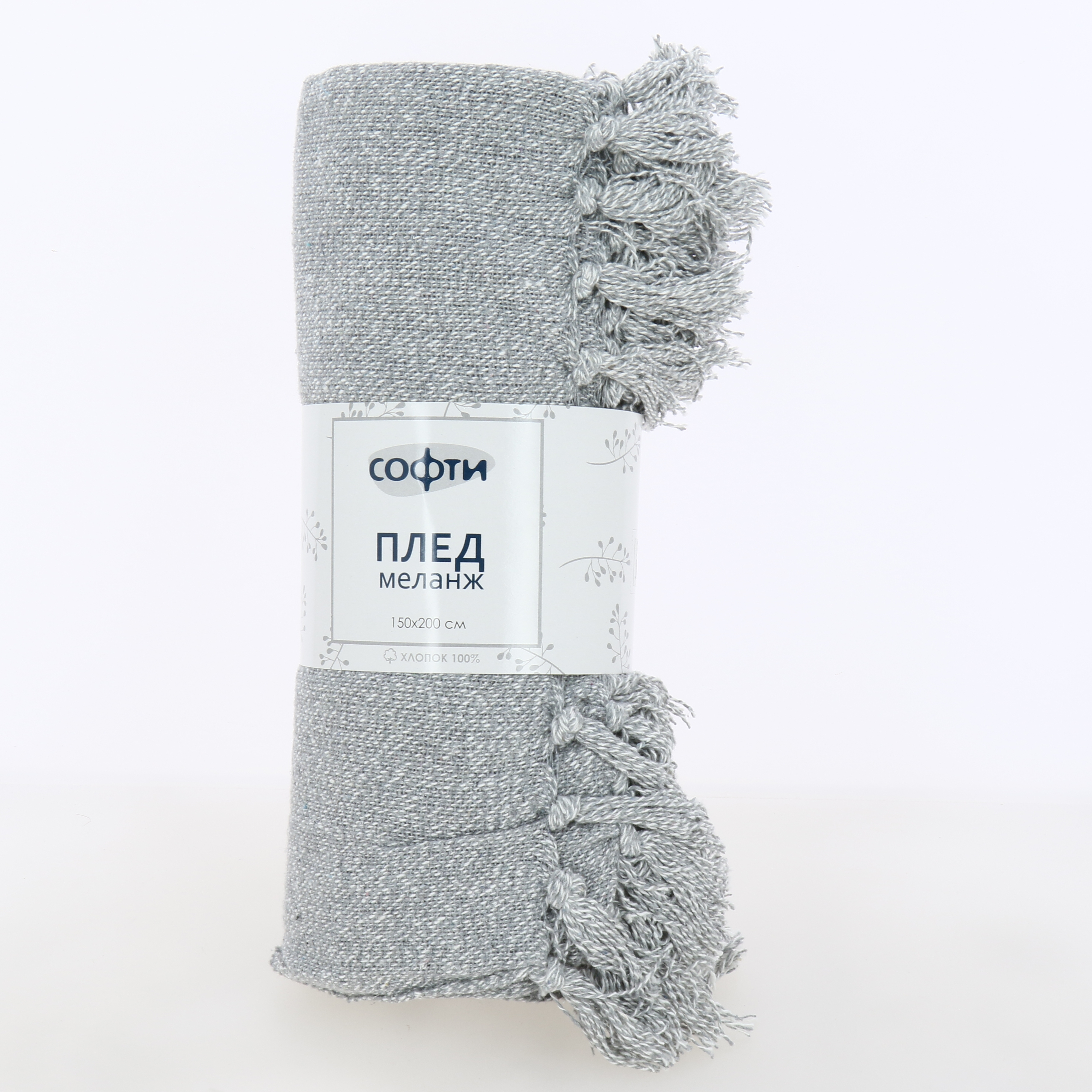 Плед 150х200см СОФТИ МЕЛАНЖ светло-серый хлопок