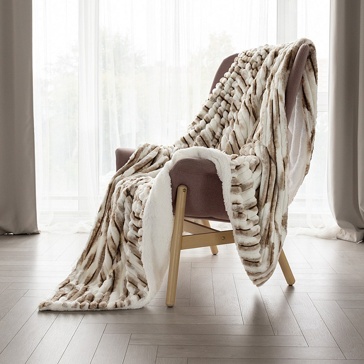 Плед 150x200см DE'NASTIA Double soft кролик с шерпой коричневый/белый полиэстер