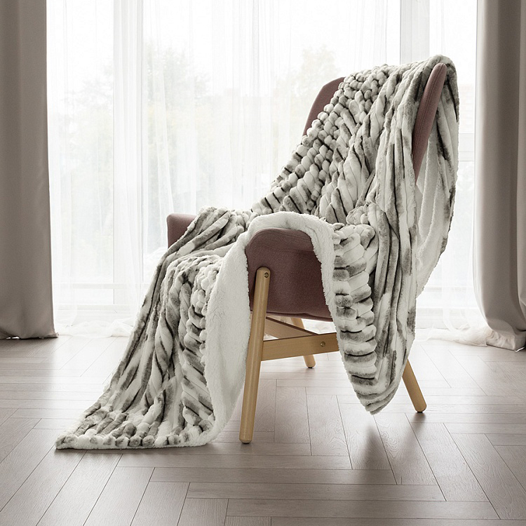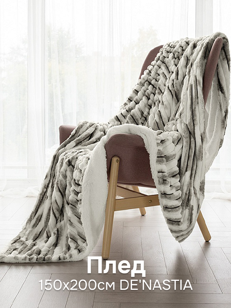 Плед 150x200см DE'NASTIA Double soft кролик с шерпой серый/белый полиэстер