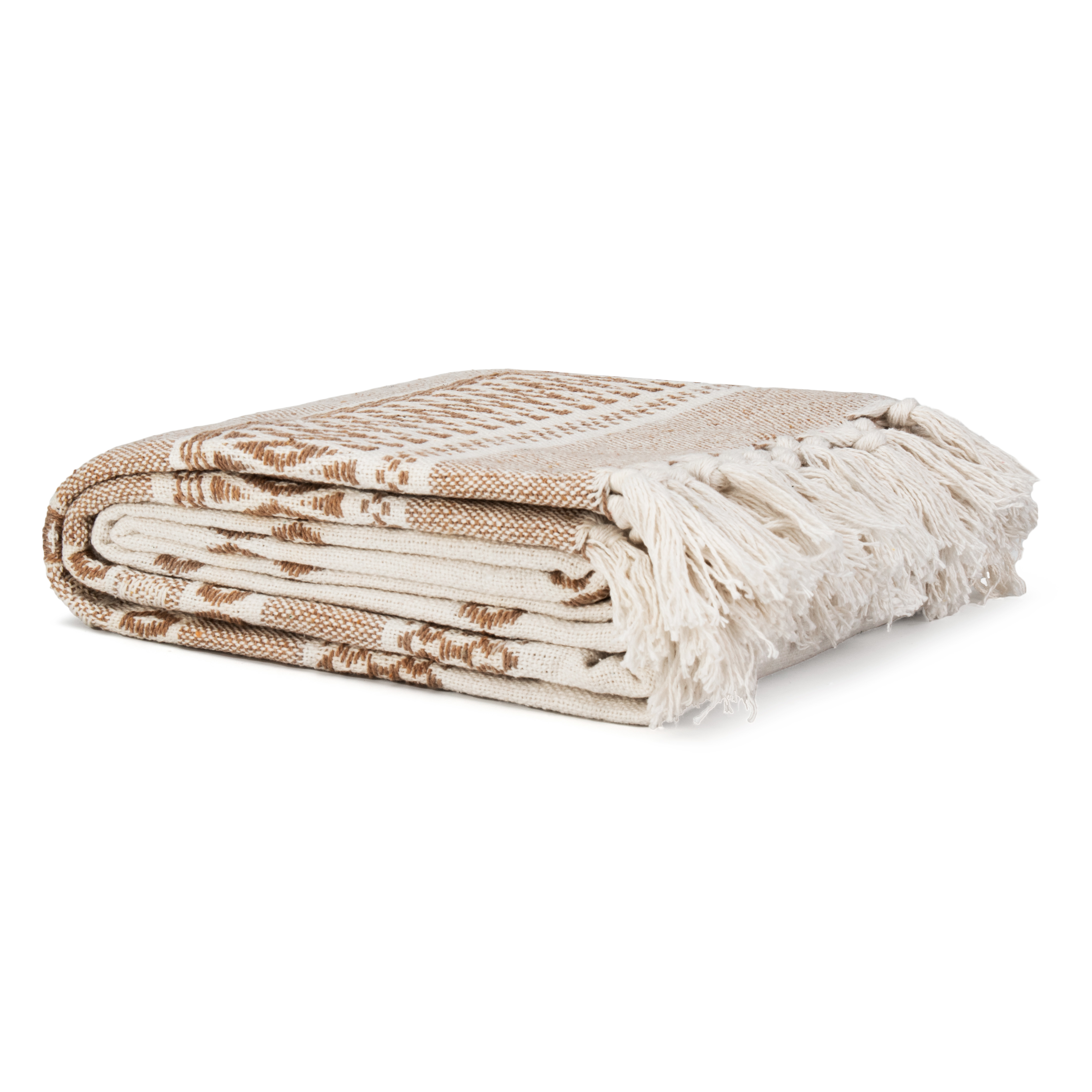 Плед 150х200см LUCKY ETNIC SGTH-1238 узор/полоска бежевый экрю хлопок 100%