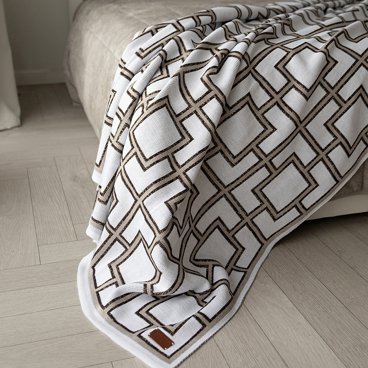 Плед 150x200см DE'NASTIA Геометрия квадраты белый/бежевый акрил