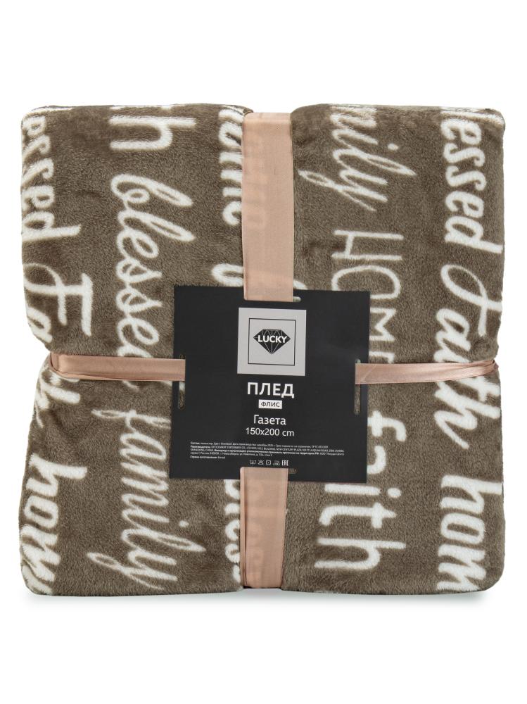 Плед 150x200см LUCKY Газета бежевый флис полиэстер