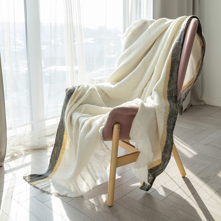 Плед 150x200см DE'NASTIA под мохер Полоски по краю молочный шерсть/нейлон/акрил
