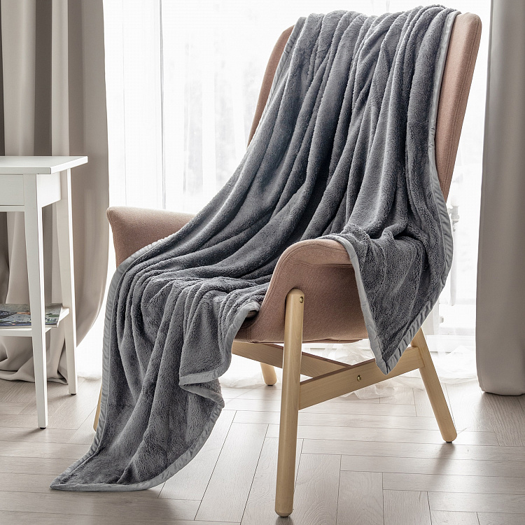 Плед 150x200см DE'NASTIA Тедди светло-серый полиэстер
