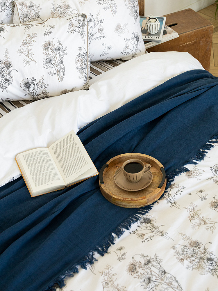Плед 150x200см DE'NASTIA многослойный синий хлопок