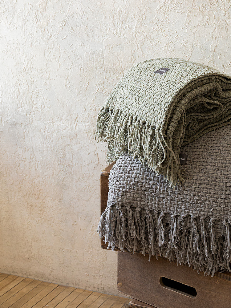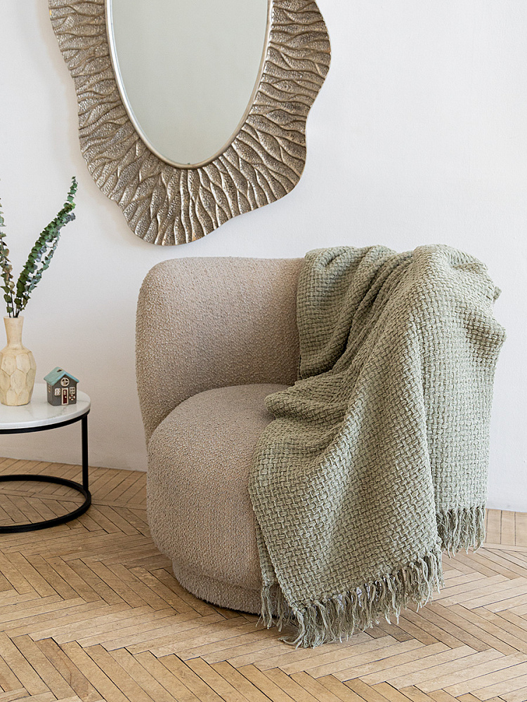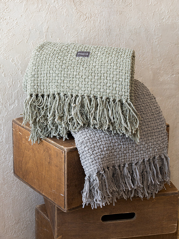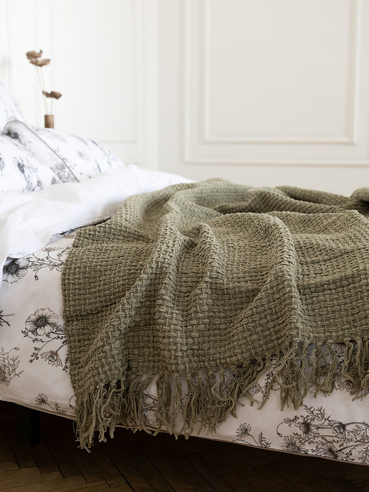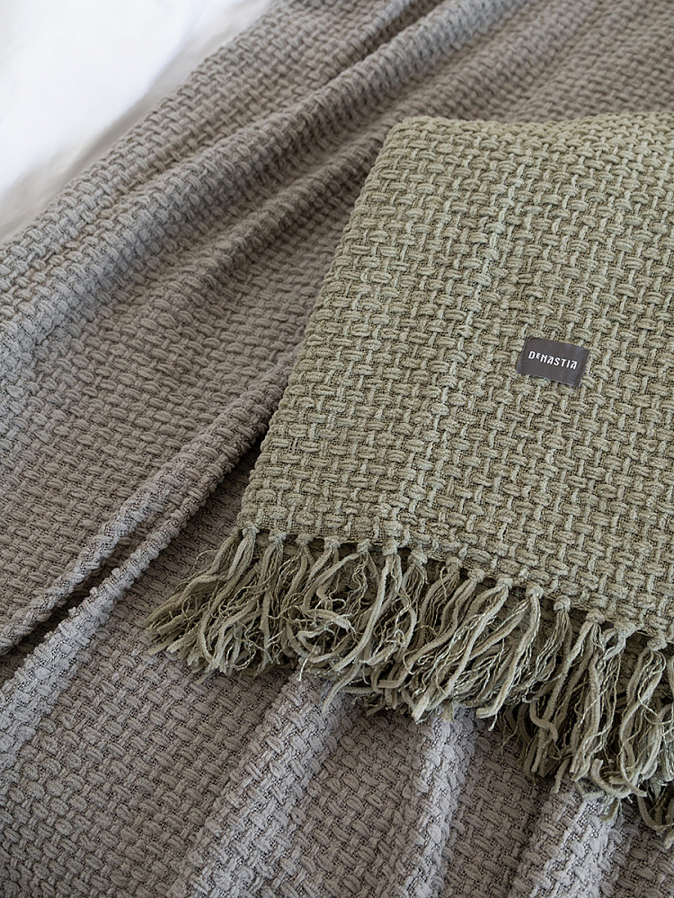 Плед 150x200см DE'NASTIA плетеный зеленый хлопок/шенилл