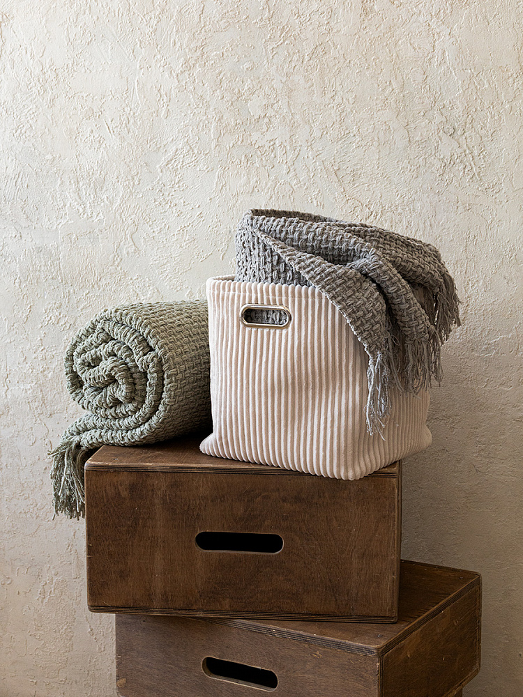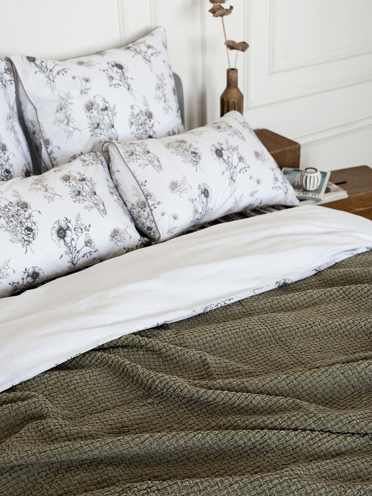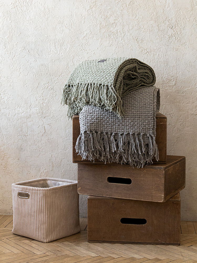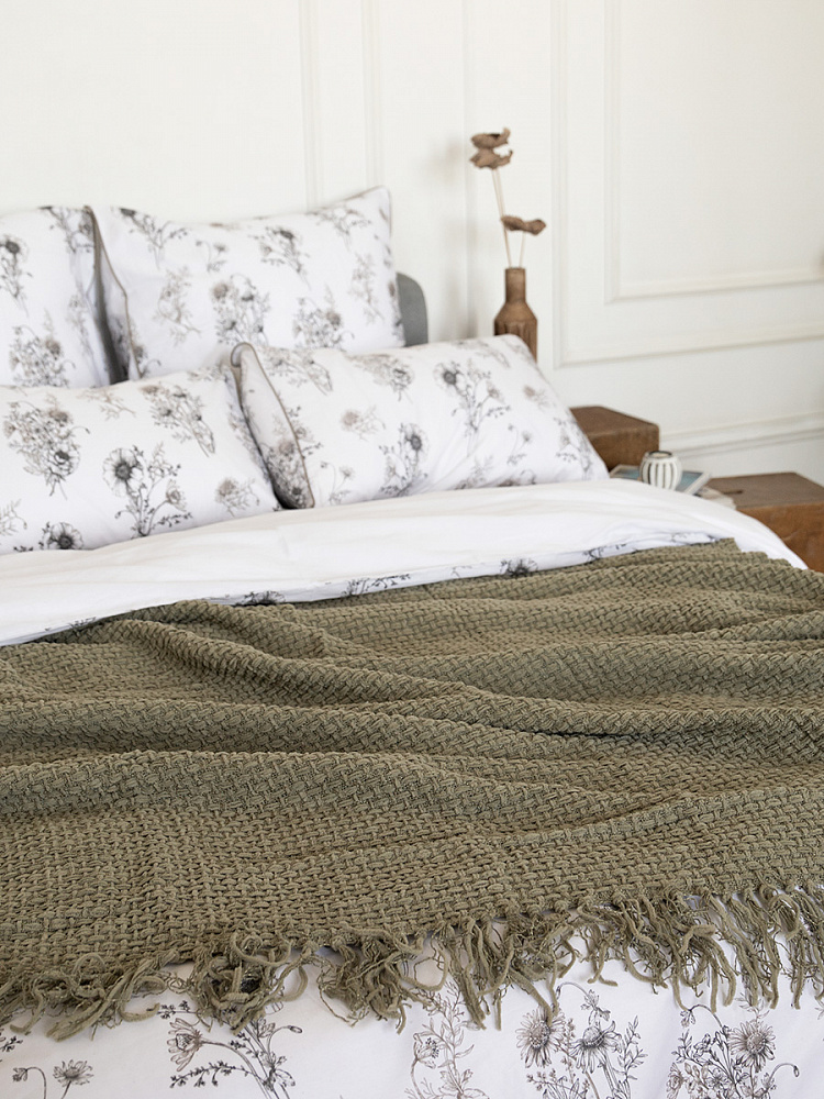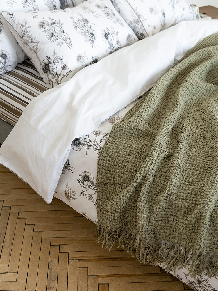 Плед 150x200см DE'NASTIA плетеный зеленый хлопок/шенилл