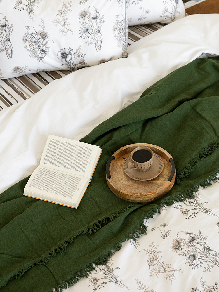 Плед 150x200см DE'NASTIA многослойный зеленый хлопок