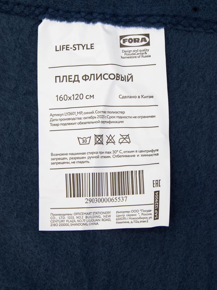 Плед 160х120см FORA плотность 130гр/м синий полиэстер