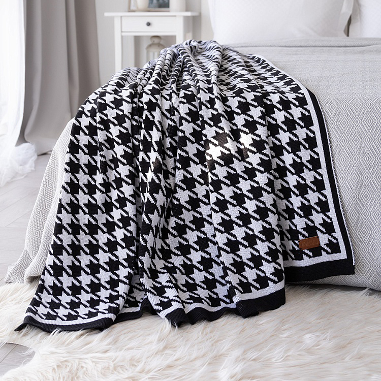 Плед 150x200см DE'NASTIA Гусиные лапки черный/белый акрил