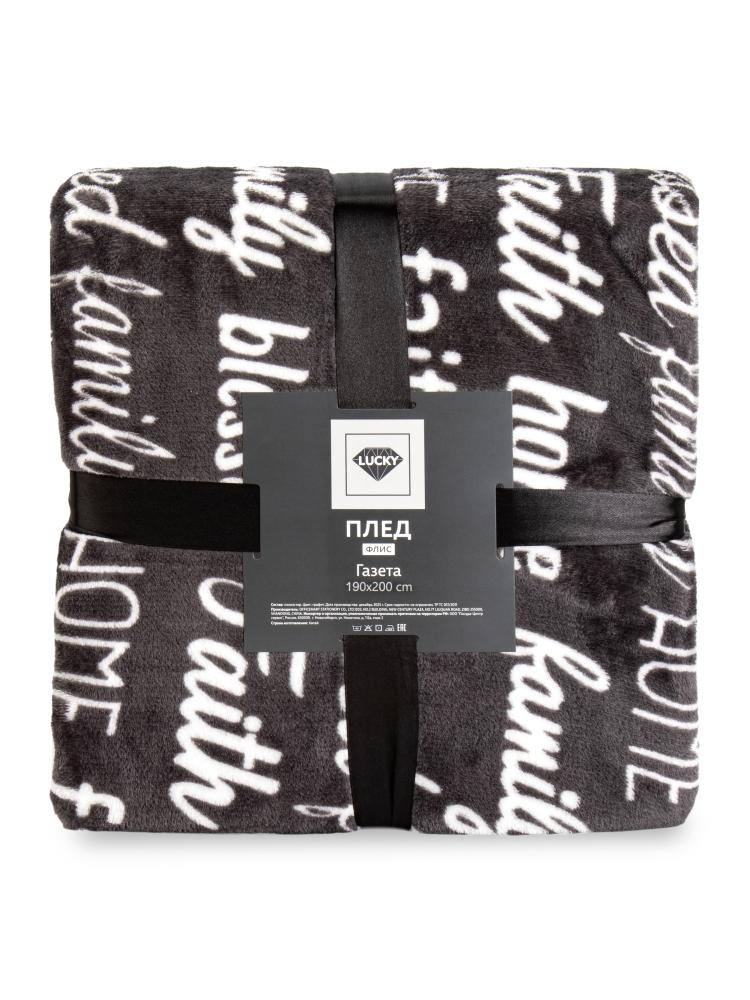 Плед 190x200см LUCKY Газета графит флис полиэстер