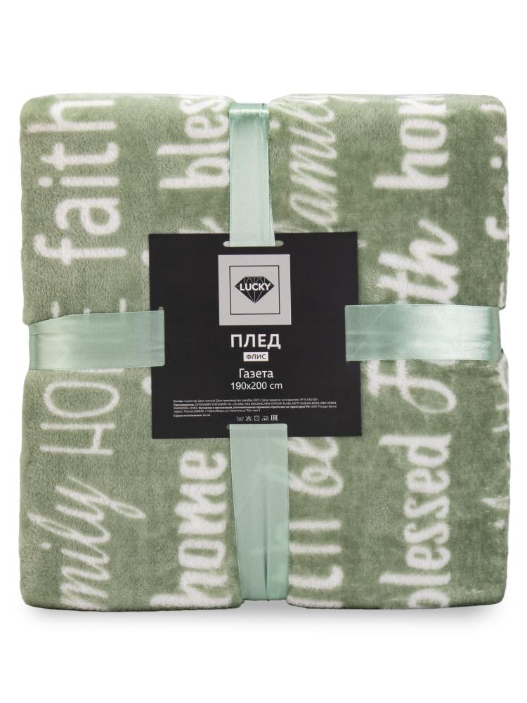 Плед 190x200см LUCKY Газета мятный флис полиэстер