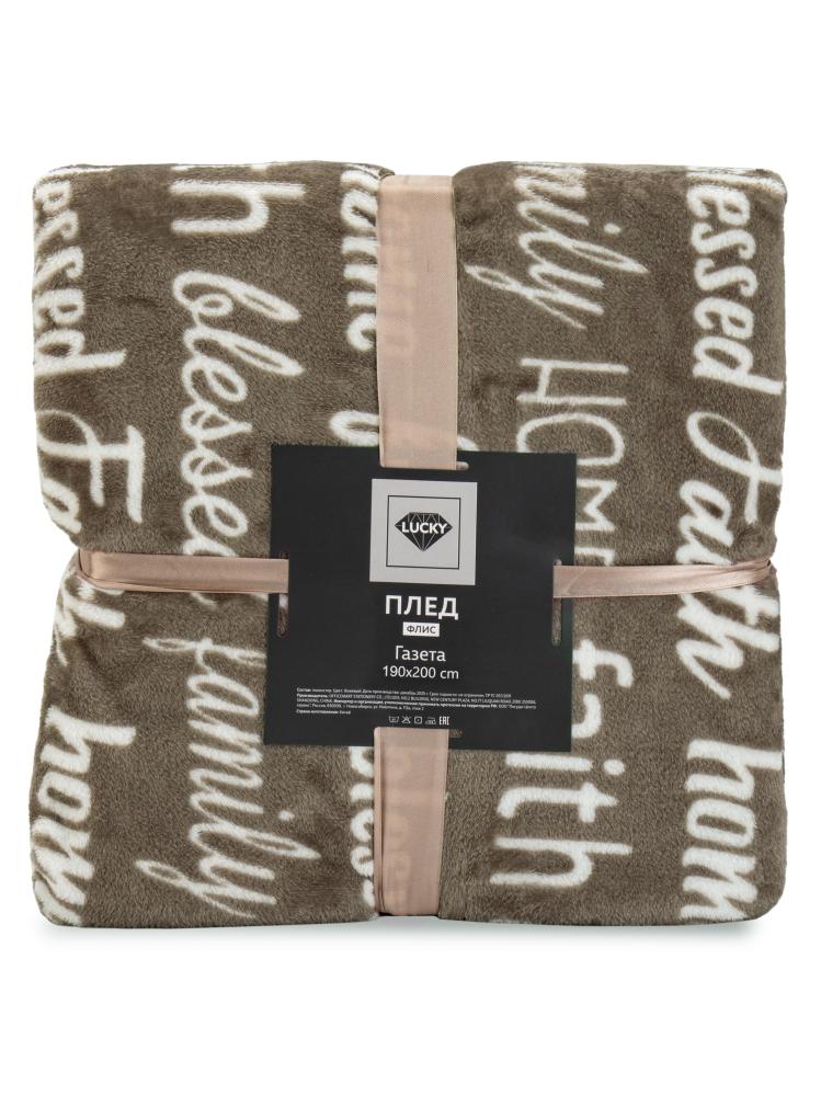 Плед 190x200см LUCKY Газета бежевый флис полиэстер