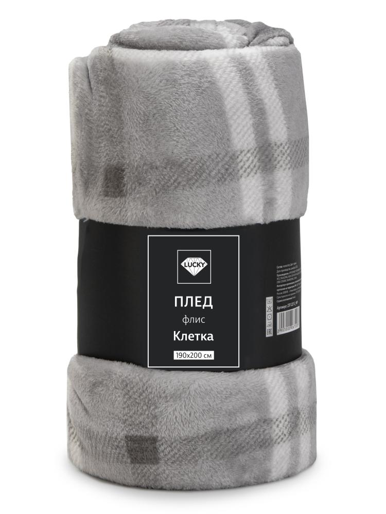 Плед 190x200см LUCKY Клетка серый флис полиэстер_MP