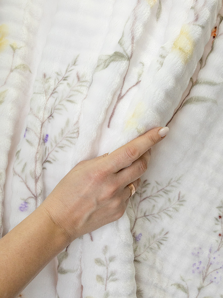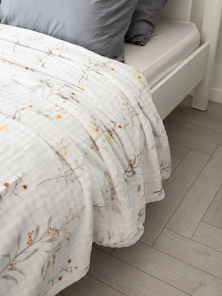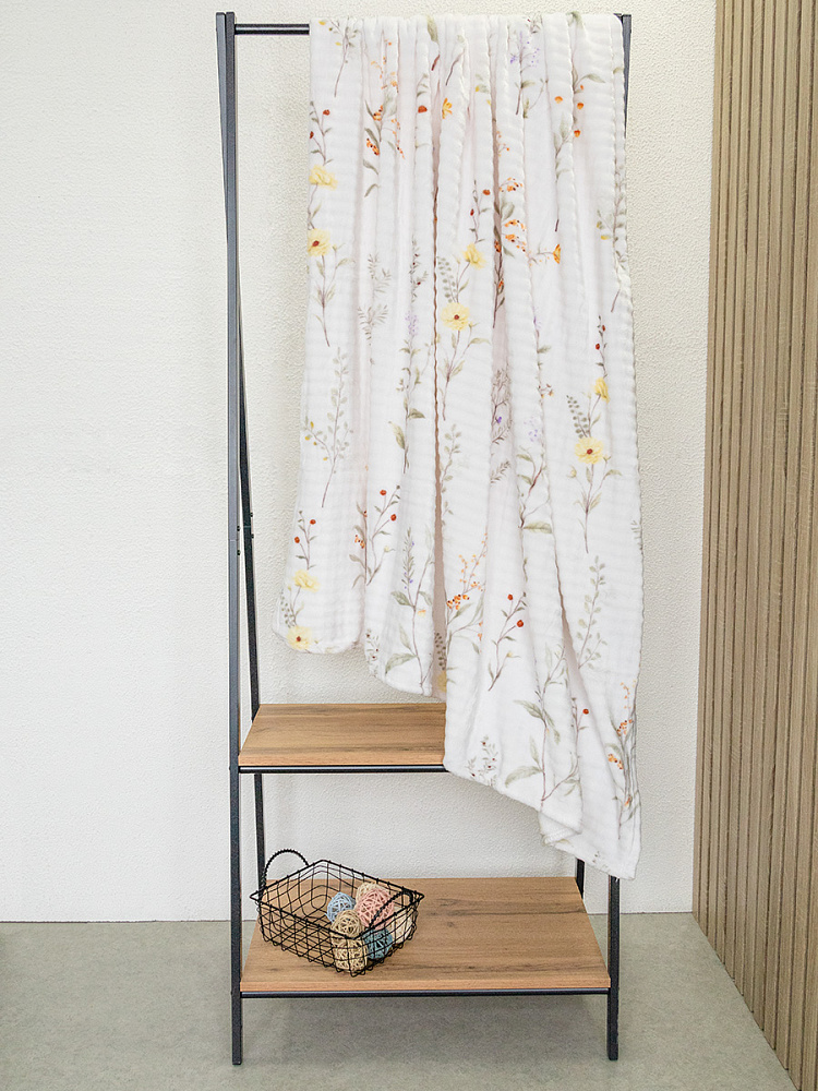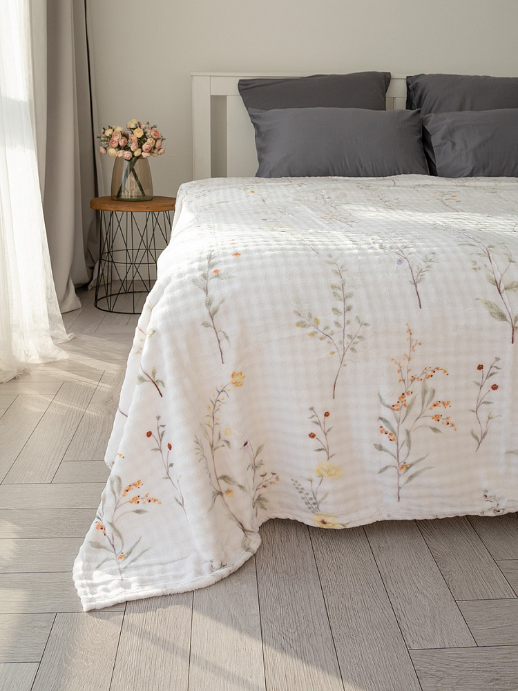 Плед 200x220см DE'NASTIA Цветы белый полиэстер