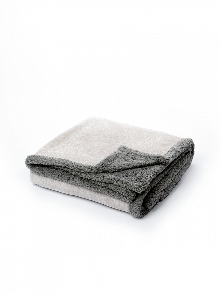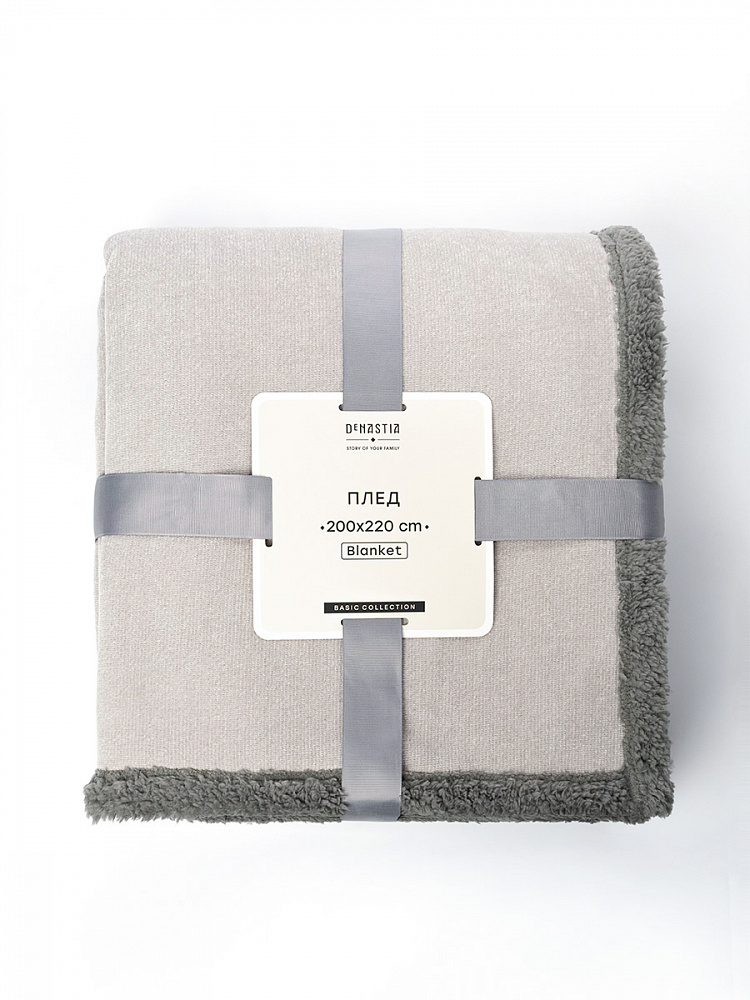 Плед 200x220см DE'NASTIA twinsoft светло-серый/темно-серый шенилл/шерпа полиэстер