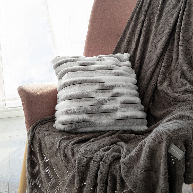 Наволочка декоративная 45х45см DE'NASTIA Double soft кролик с шерпой серый/белый полиэстер