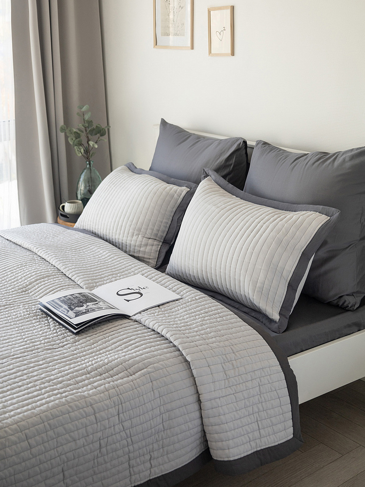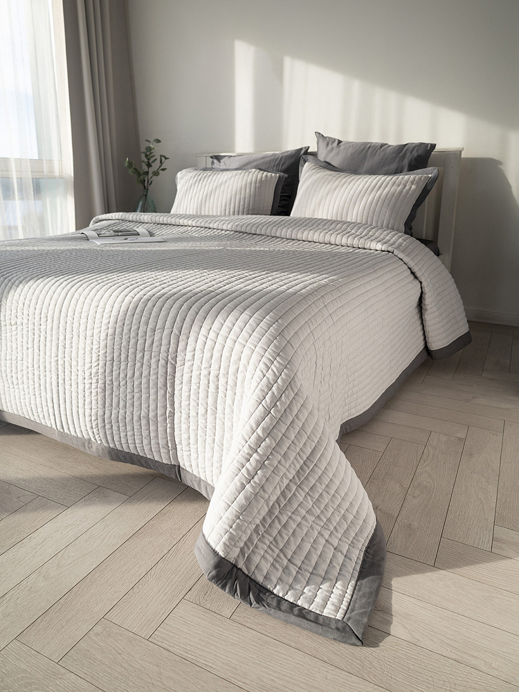 Покрывало 150x205см DE'NASTIA Structure строчка серый полиэстер
