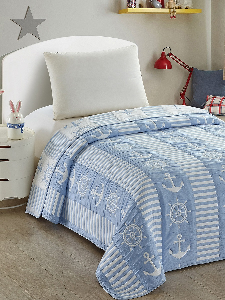 Покрывало DE'NASTIA 150x200 3слоя 55% хлопок, 45% полиэстер жаккард якоря голубой U000198