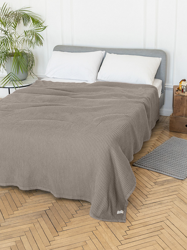 Покрывало 175x200см DE'NASTIA вафельное бежевый хлопок