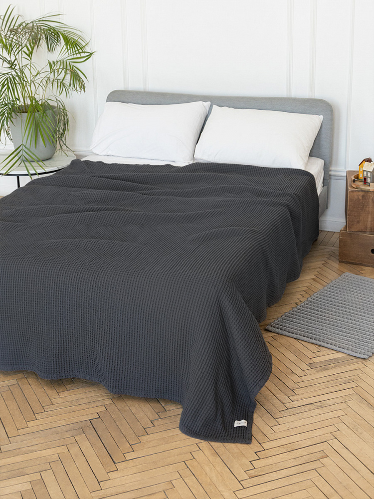 Покрывало 175x200см DE'NASTIA вафельное графит хлопок