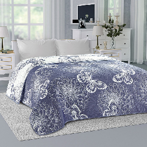 Покрывало 200х240см DE'NASTIA Бабочки 3слоя синее жаккард 55% хлопок 45% полиэстер