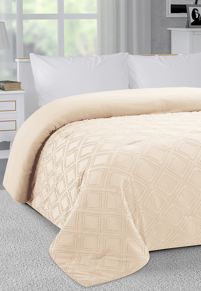 Покрывало 200x240см LUCKY РОМБЫ 3слоя молочное 100% полиэстер