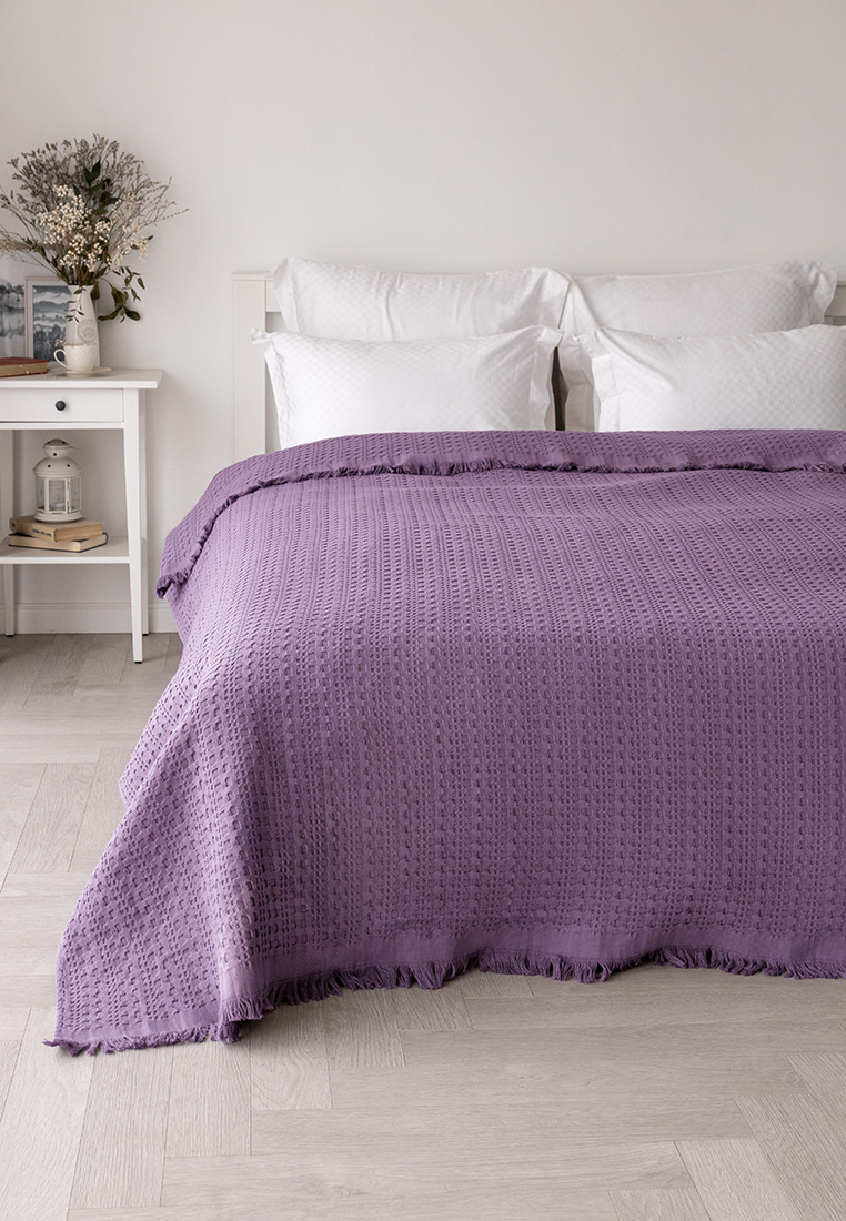 Покрывало 200x220см LUCKY вафельное с бахромой сиреневый хлопок 100%