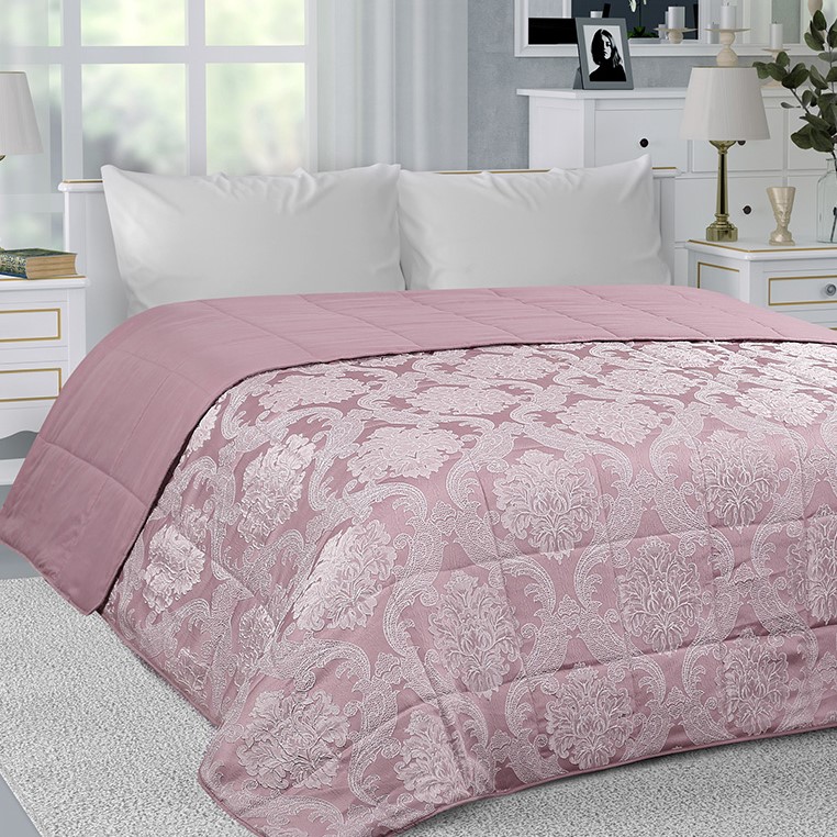 Покрывало 190х220см DE'NASTIA кружево Ампир 3слоя лиловое жаккард 100% полиэстер