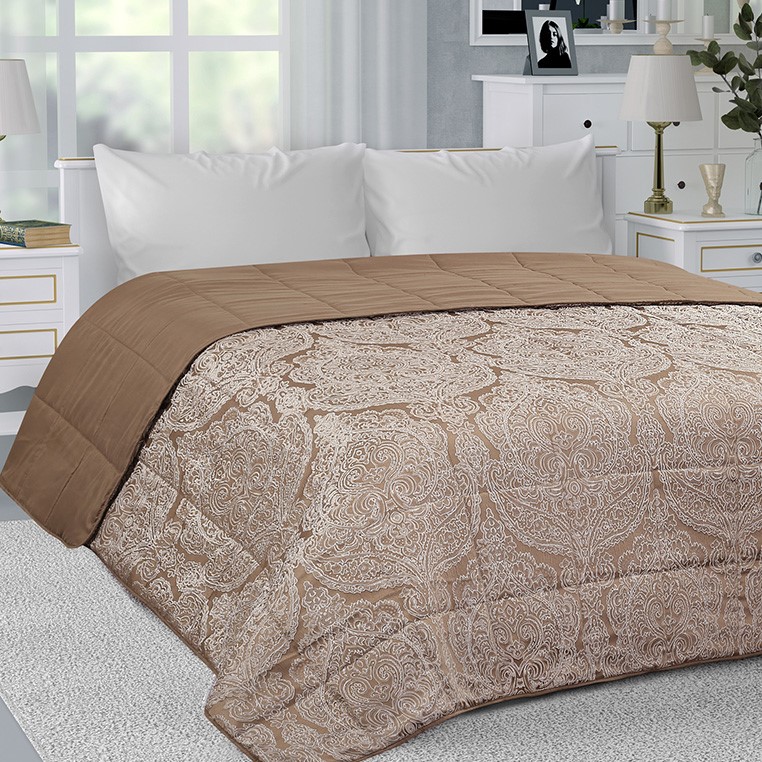 Покрывало 190х220см DE'NASTIA кружево Романтика 3слоя светло-коричневое жаккард 100% полиэстер