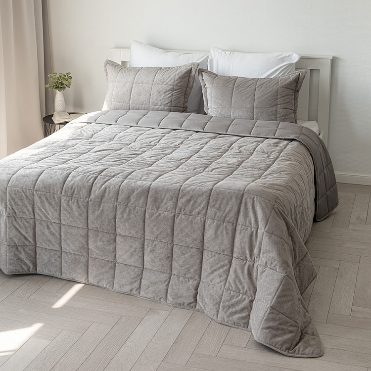 Покрывало 240x260см DE'NASTIA серый вельвет полиэстер
