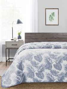 Покрывало DE'NASTIA 260х240см 3 слоя жаккард тропики синий U000113