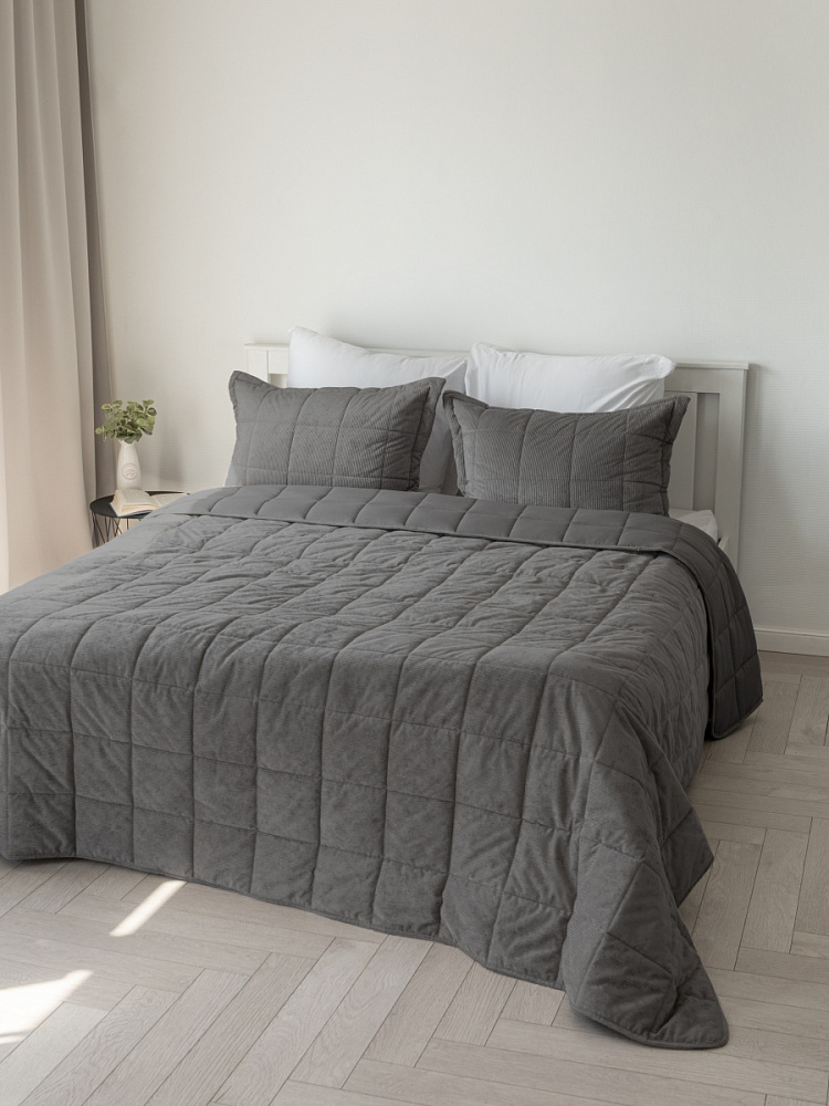 Покрывало 200x240см DE'NASTIA графит вельвет полиэстер